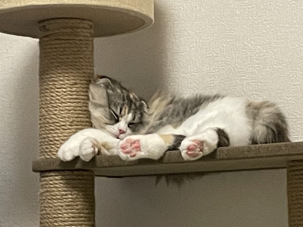 早寝早起き空ちゃんです。私が花粉症で弱っていても何のその、いつも通りのルーティーンで過ごしております。朝晩9時前後に突然ハイになり、どうしたものかと心配しましたが猫の習性だと思い見送っています。ご飯は朝7時、夕方6時に決めていますが、それは空に合わせています。